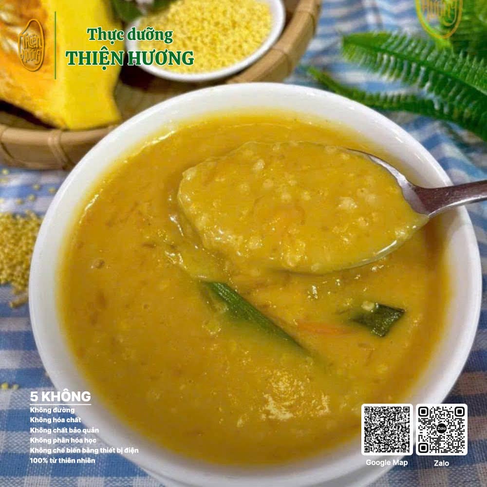 • Cháo kê (bí đỏ, gạo lứt, [yến mạch lá dày], [đậu xanh] , [đậu đỏ], [hạt sen lụa])