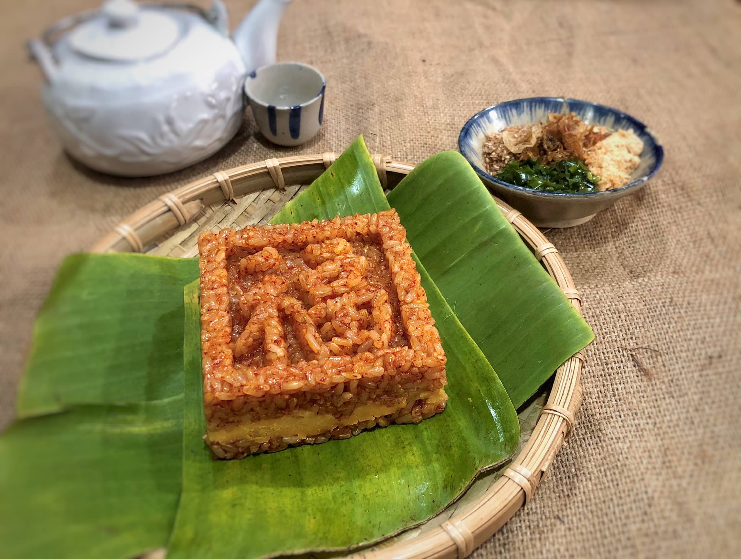 Xôi gấc đậu xanh in khuôn